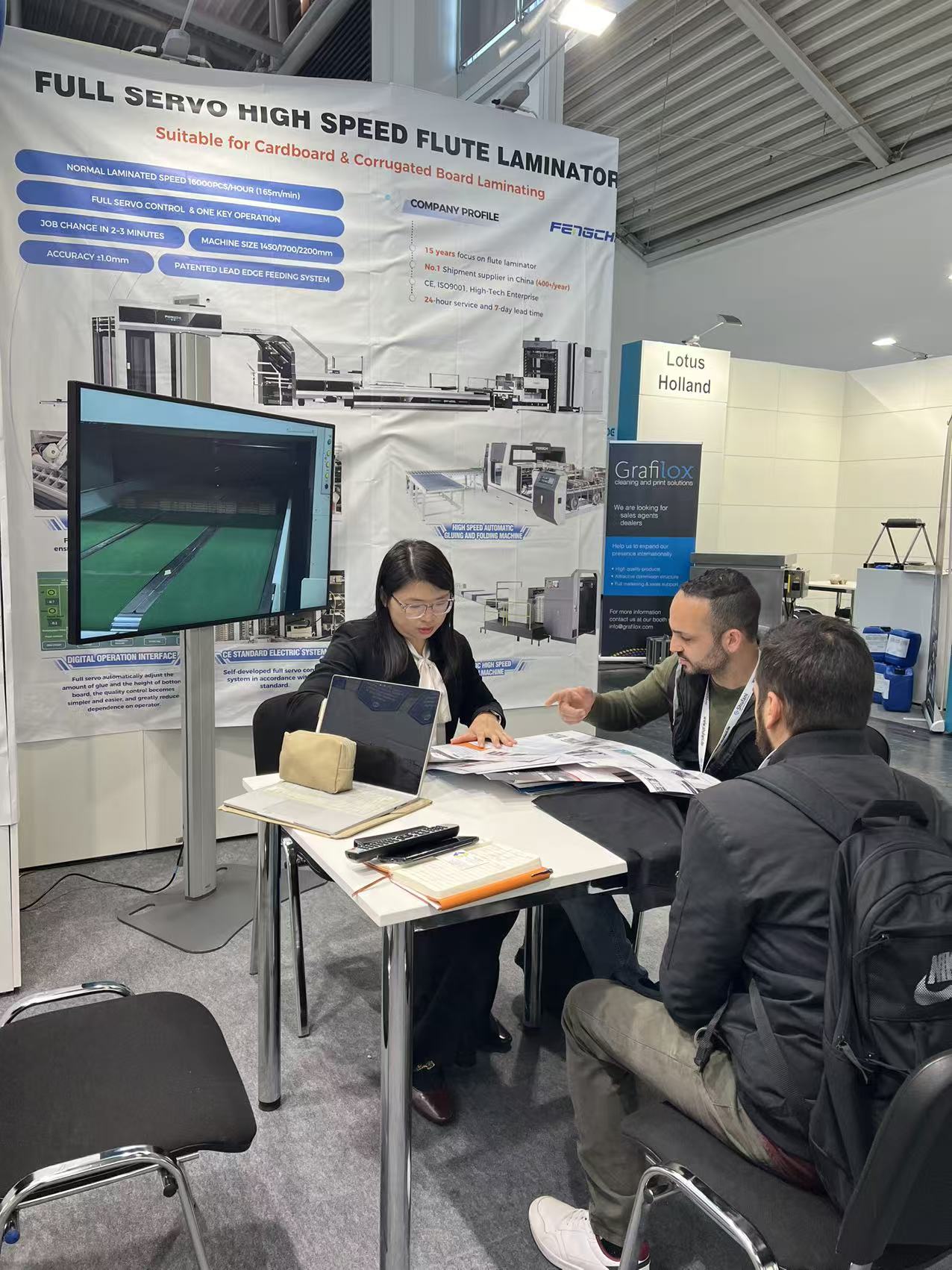 During the exhibition, we have displayed our intelligent paper lamiantor, flute laminator, automatic two pcs joint folder gluer and automatic spot uv coating machine.
