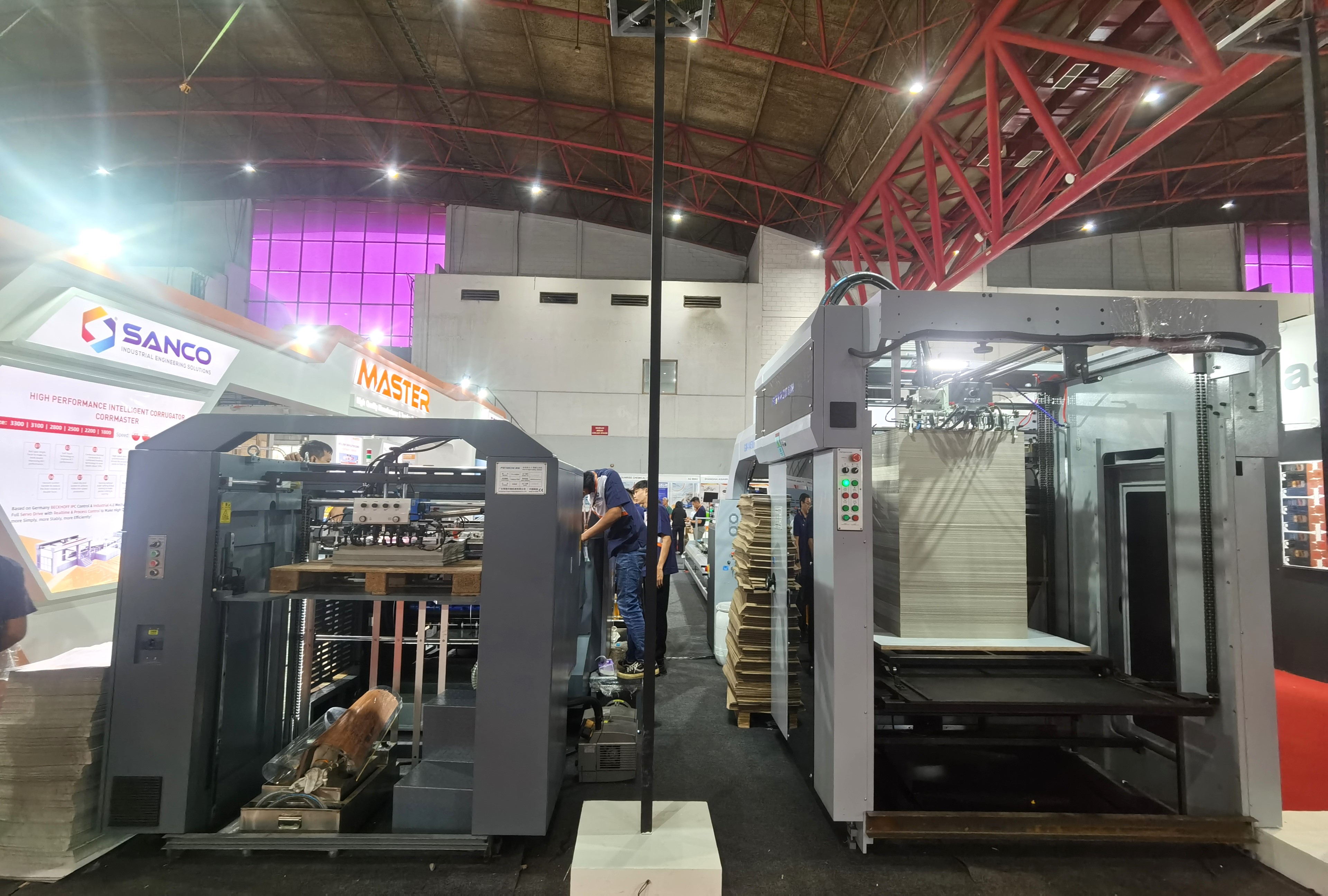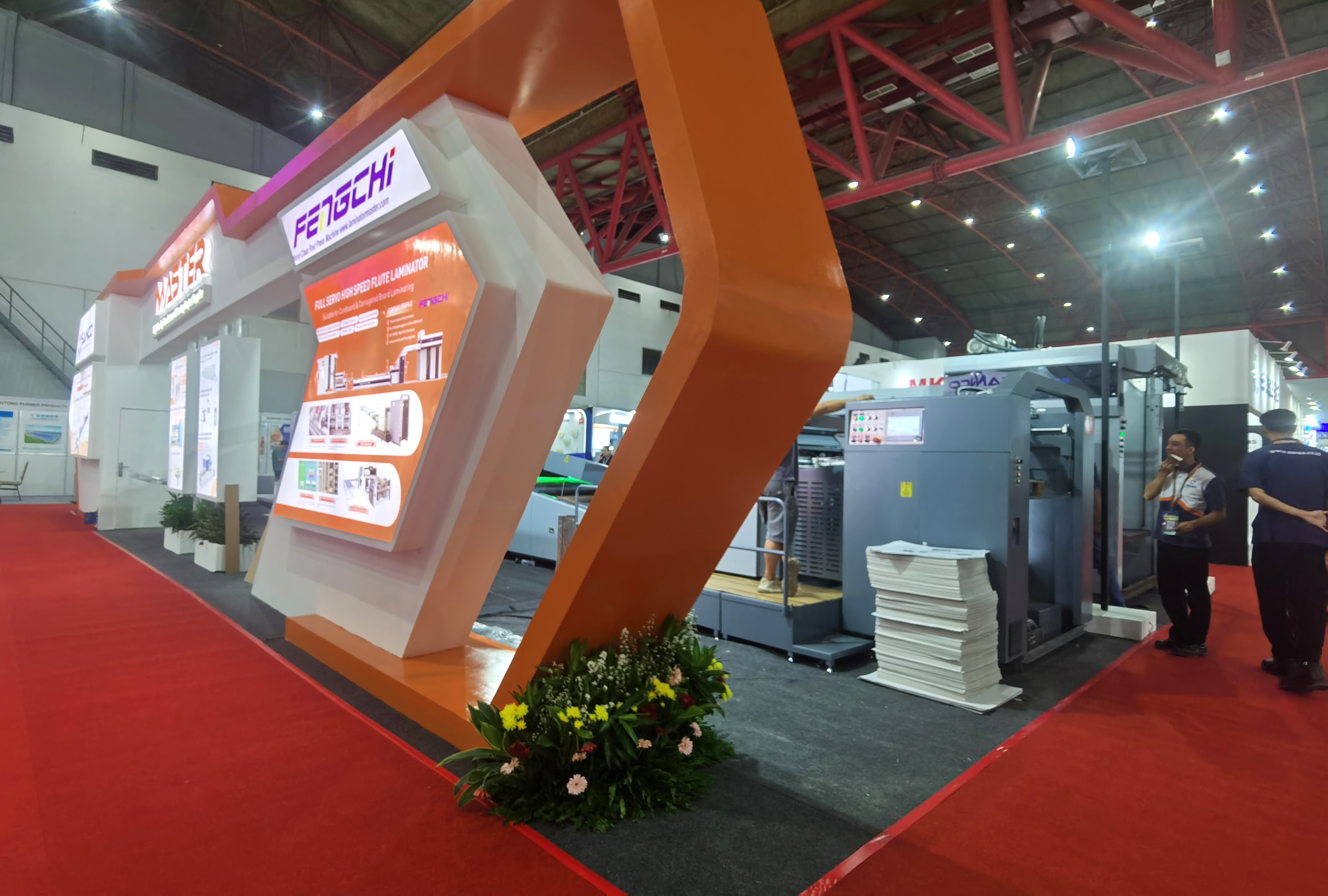 FENGCHI join the ALL PRINT PACK INDONESIA 2025, from 8 to 11, October, at JIEXPO Jakarta, with the local partner SANCO support, and make a live show of intelligent high speed flute laminator GW-1450LP, automatic high speed spot uv machine Ty-106W, and introduce the new product of automatic window patching machine (V cut and creasing), double pieces folder gluer, and automatic box stitcher.